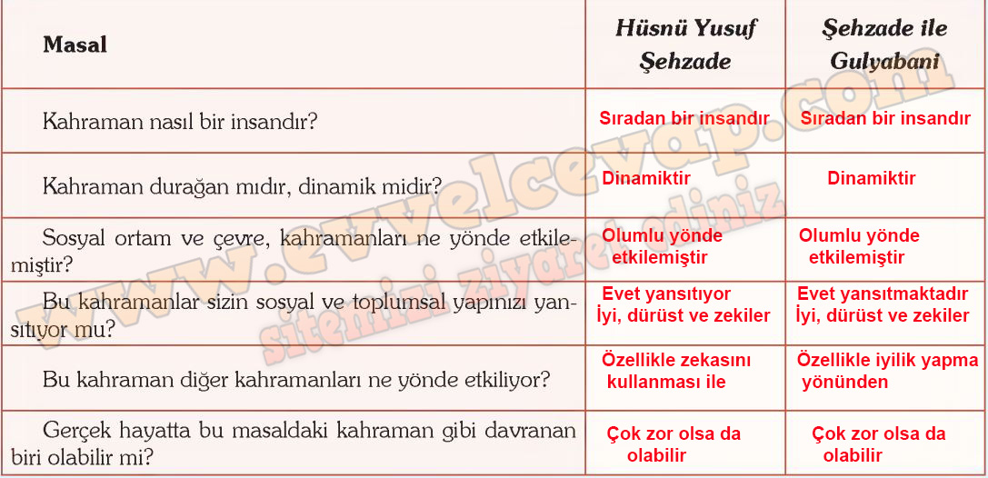 Yukarıda verilen açıklamalara ve okuduğunuz metinlere göre aşağıdaki tabloyu uygun şekilde doldurunuz.